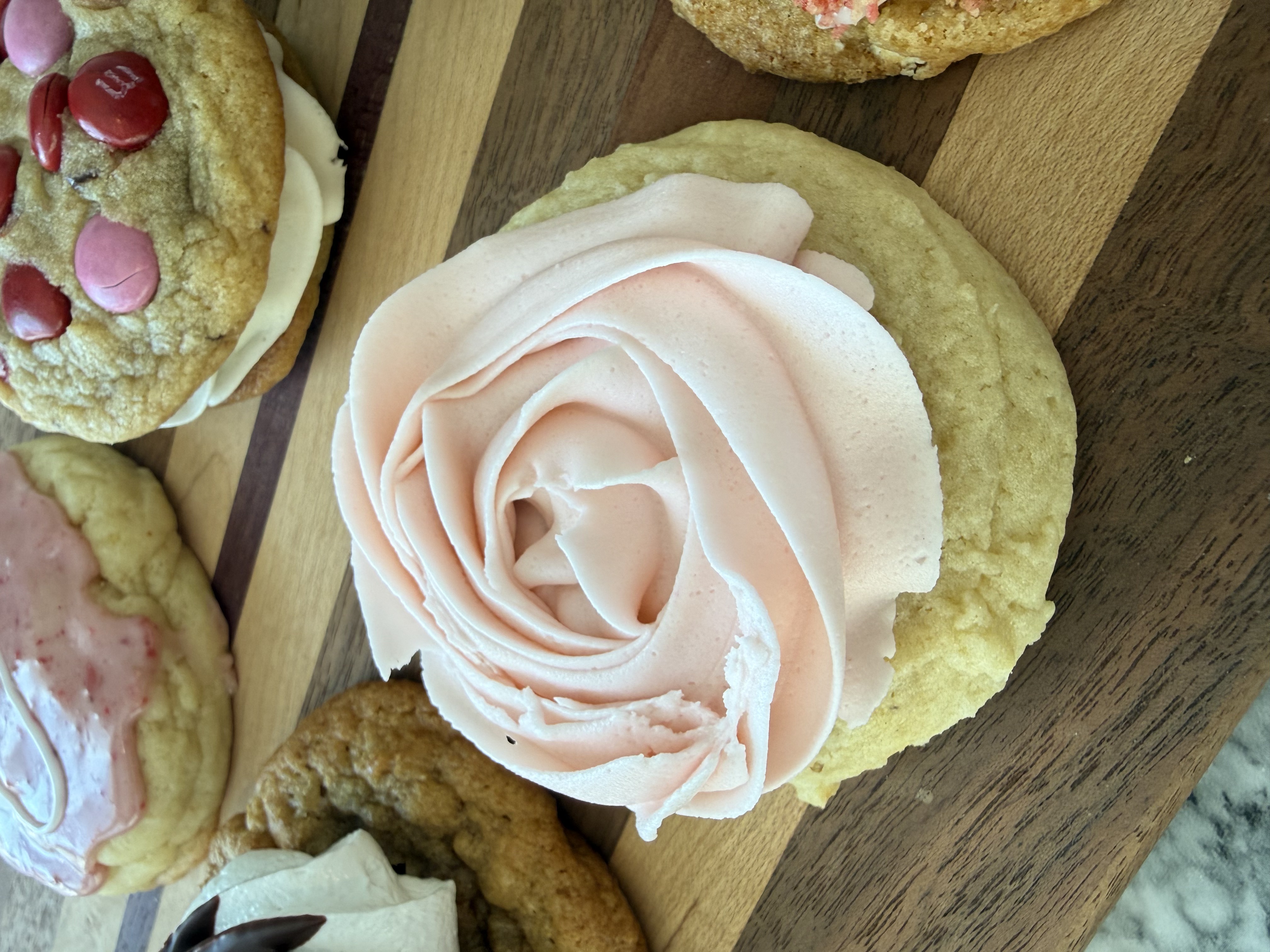 - Pink Vanilla (Tammy’s Cookie Co. base, buttercream tinted light pink)